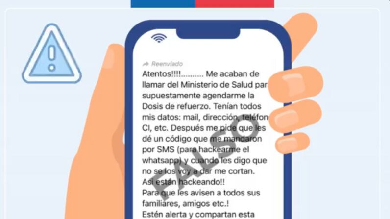 “¡Atentos! Me acaban de llamar del Ministerio de Salud para supuestamente agendarme la dosis de refuerzo. Tenían todos mis datos: mail, dirección, teléfono, CI, etc. Después me pide que les de un código que me mandaron por un SMS (para hackearme el WhatsApp) y cuando les digo que no se los voy a dar, me cortan ¡Así están hackeando!”, ejemplificaron.
