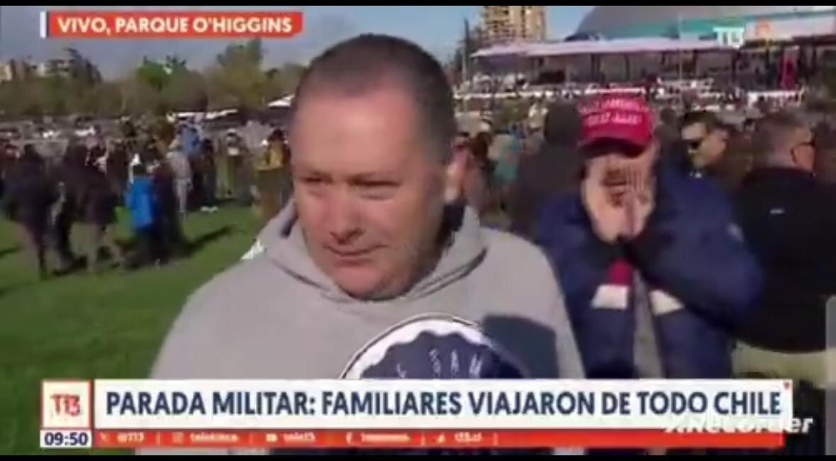 Fue cuando la periodista entrevistaba a un orgulloso padre que viajó desde lejos para ver a su hija desfilar, momento que el manifestante del Team Patriota, comenzó a gritar a sus espaldas arruinando el emotivo momento familiar.