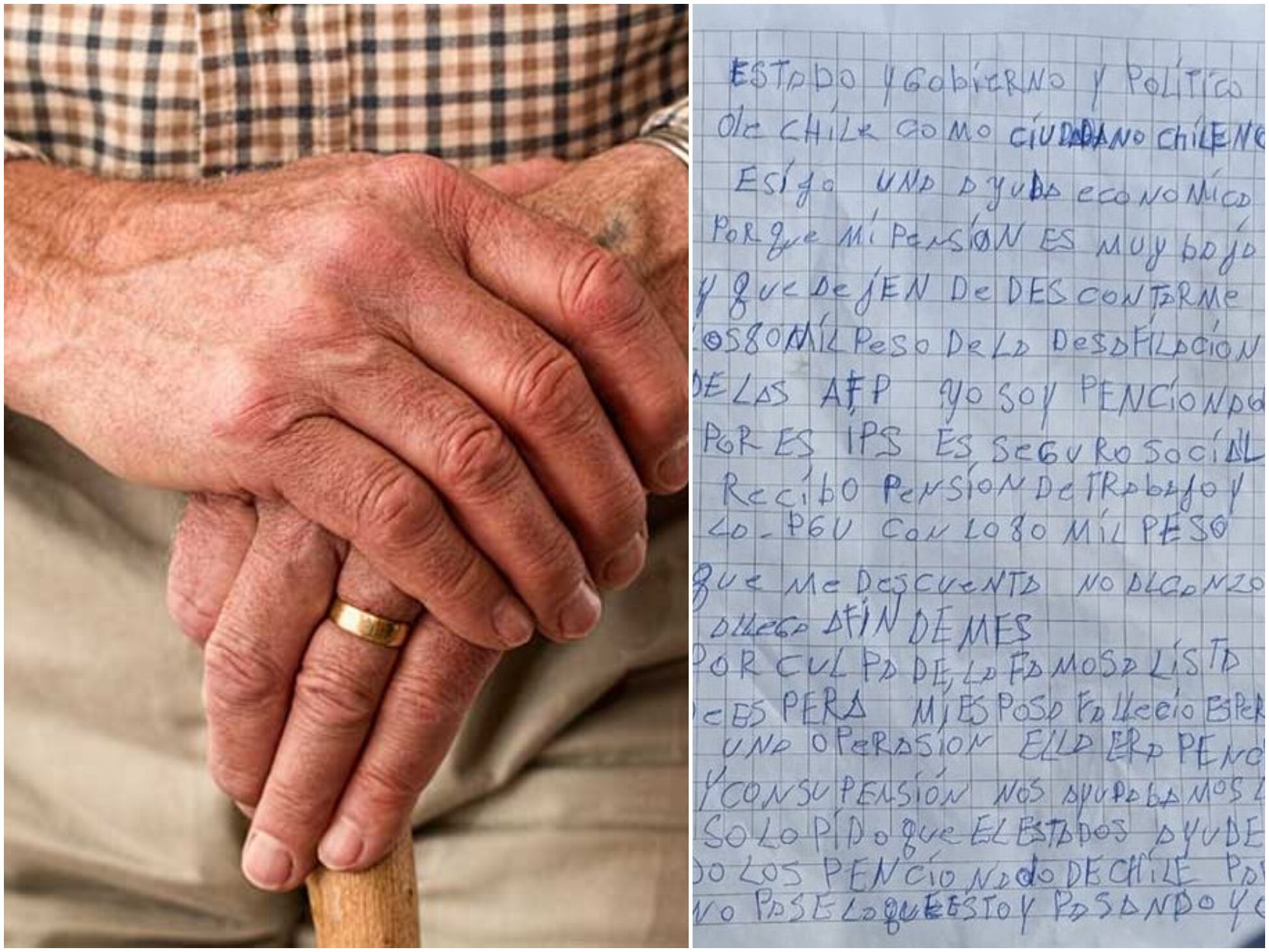 El escrito del hombre termina apuntando que “ella era pensionada y con su pensión nos ayudábamos. Pido que el Estado ayude a todos los pensionados de Chile para que no pase lo que estoy pasando yo”.