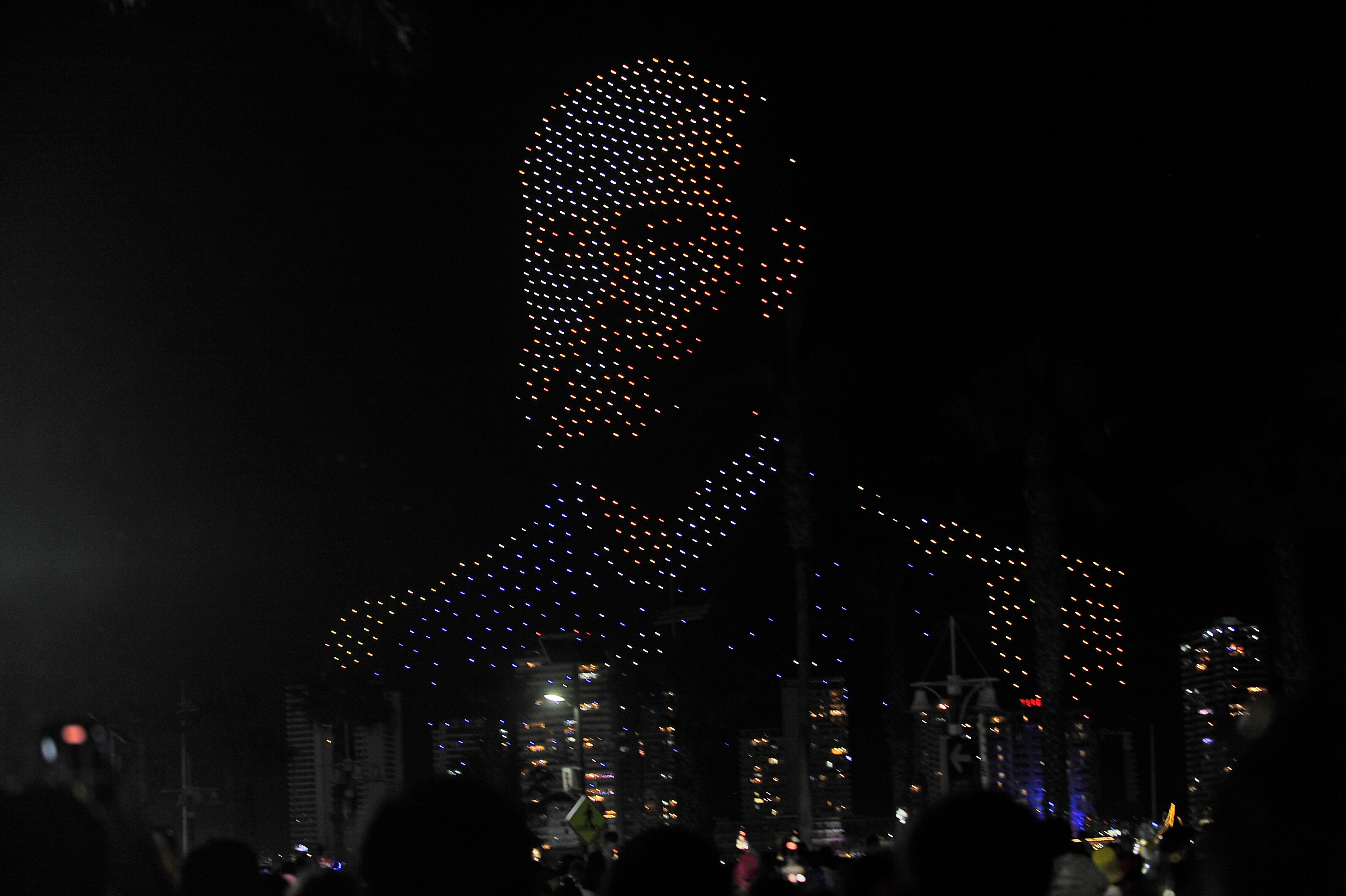 Celebración de Año Nuevo en Iquique dejó a todos enamorados: drones formaron la figura de Arturo Prat