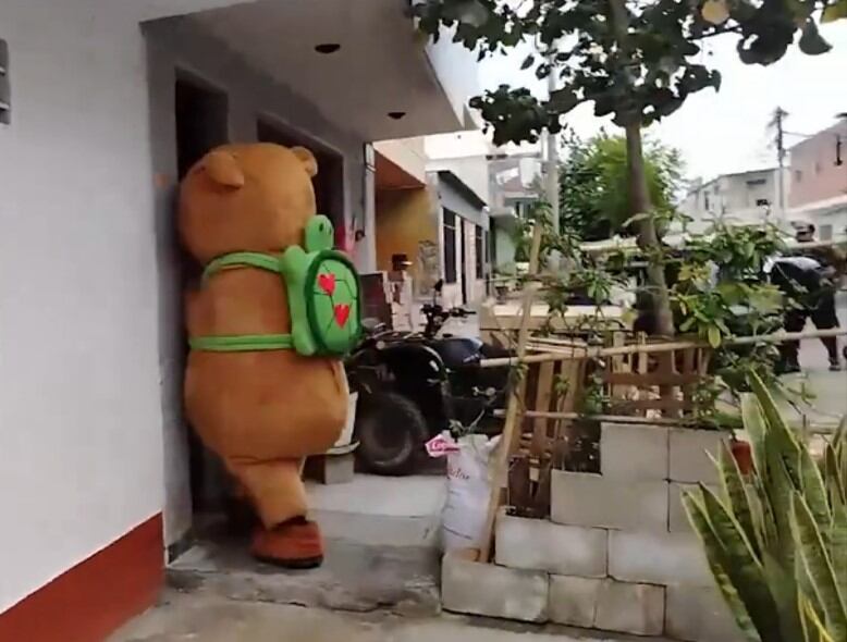 Para pasar desapercibido y no alertar al delincuente, el policía se disfrazó de capibara, el roedor de moda que ha invadido diversos países de Latinoamérica en diferentes formatos. Desde mochilas, peluches y también trajes.