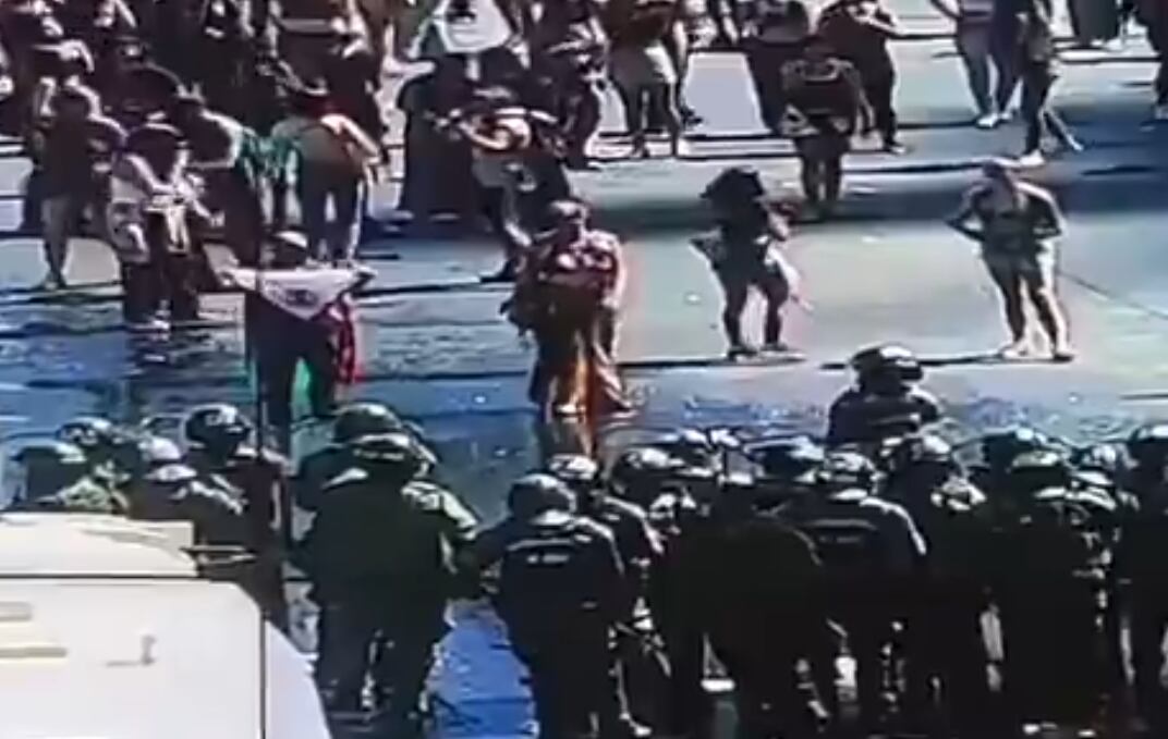 En un breve video compartido se observaron a las manifestantes frente a los carros lanza agua resistiendo ante los uniformados.