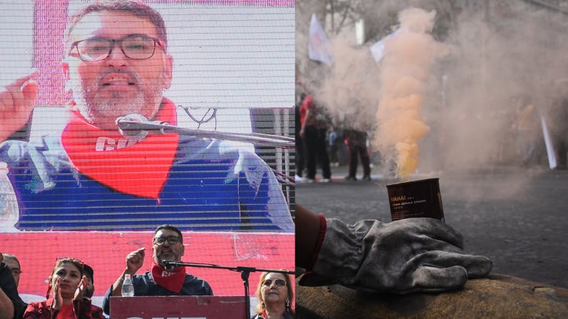 A propósito de la conmemoración del Día del Trabajador, se realizó una marcha llamada por la CUT y otros grupos de organización social, la cual se llevó a cabo en el eje central de la Alameda.