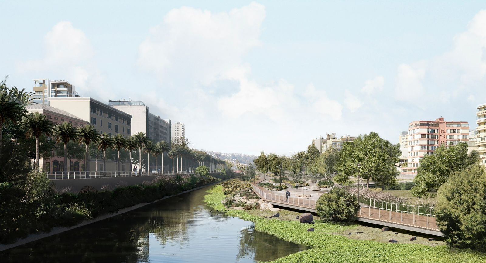 Cabe destacar que la primera parte del proyecto estará situada entre los puentes Libertad y Villanelo de Viña del Mar: contará con una zona de laguna y humedal, un anfiteatro, paseos, terrazas, miradores, una explanada y plataforma multiuso.