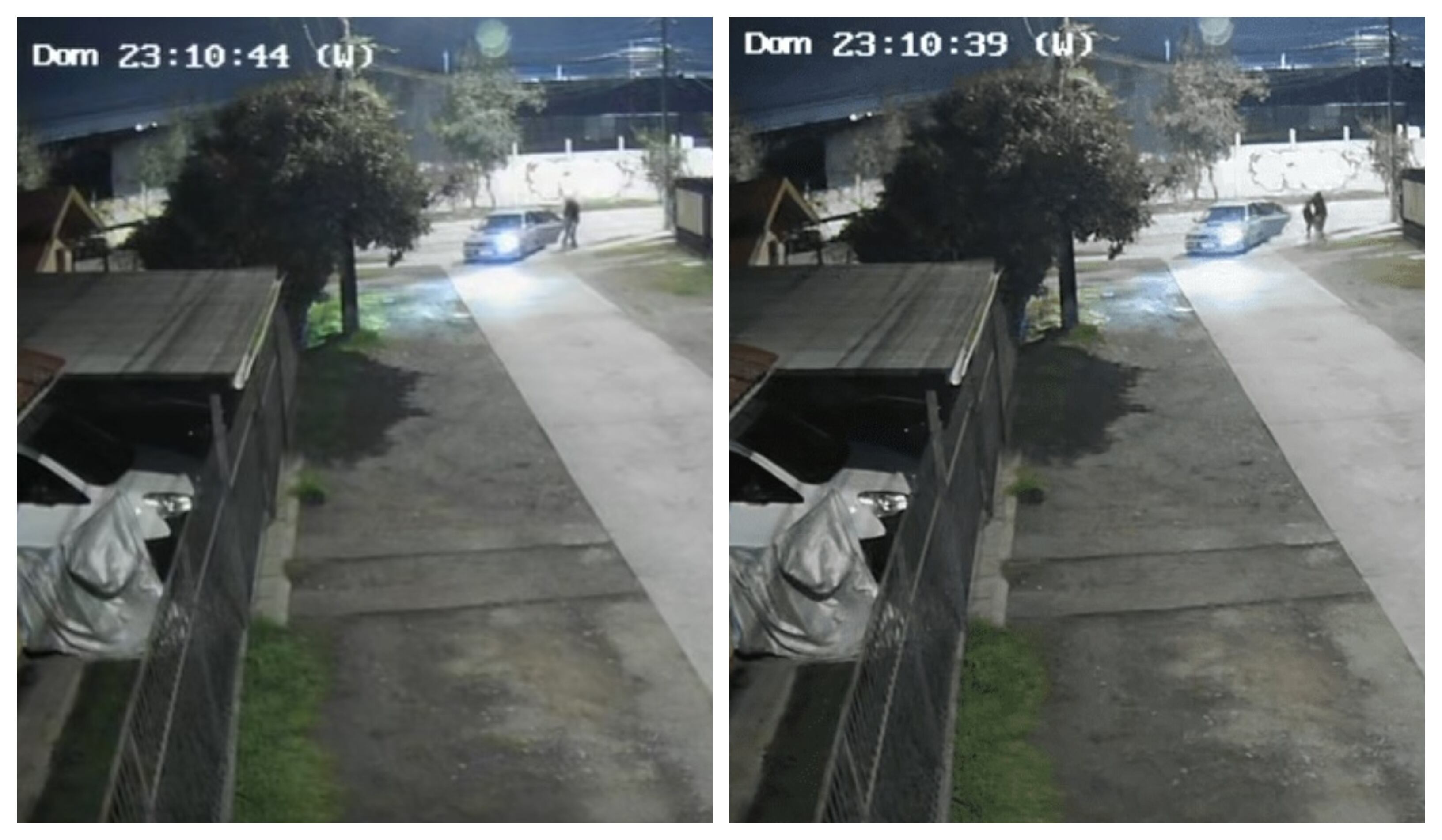 En la secuencia también se puede apreciar al tercer involucrado, quien baja del auto para rápidamente subir al mismo luego de revisar las inmediaciones de la villa donde estacionaron su auto.