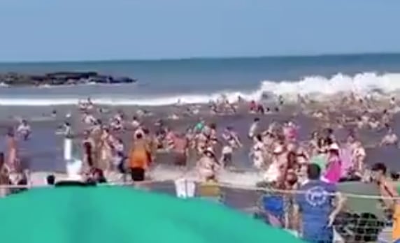 El hecho se registró durante la tarde cuando miles de turistas compartían la playa en un día caluroso. Según testimonios, el mar se retiró de manera inusual y, pocos minutos después, una poderosa ola avanzó sobre la costa, arrastrando a personas, sombrillas y pertenencias.