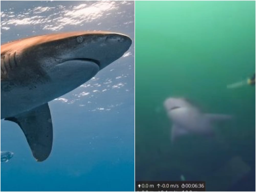 Un inédito registro fue captado por unos buzos que trabajaban en faenas submarinas en la zona de Chinquihue, Puerto Montt, donde se puede ver cómo mientras hacían sus labores cotidianas, aparece un tiburón, el que se pasea entre ellos y luego se va, regresando más tarde.