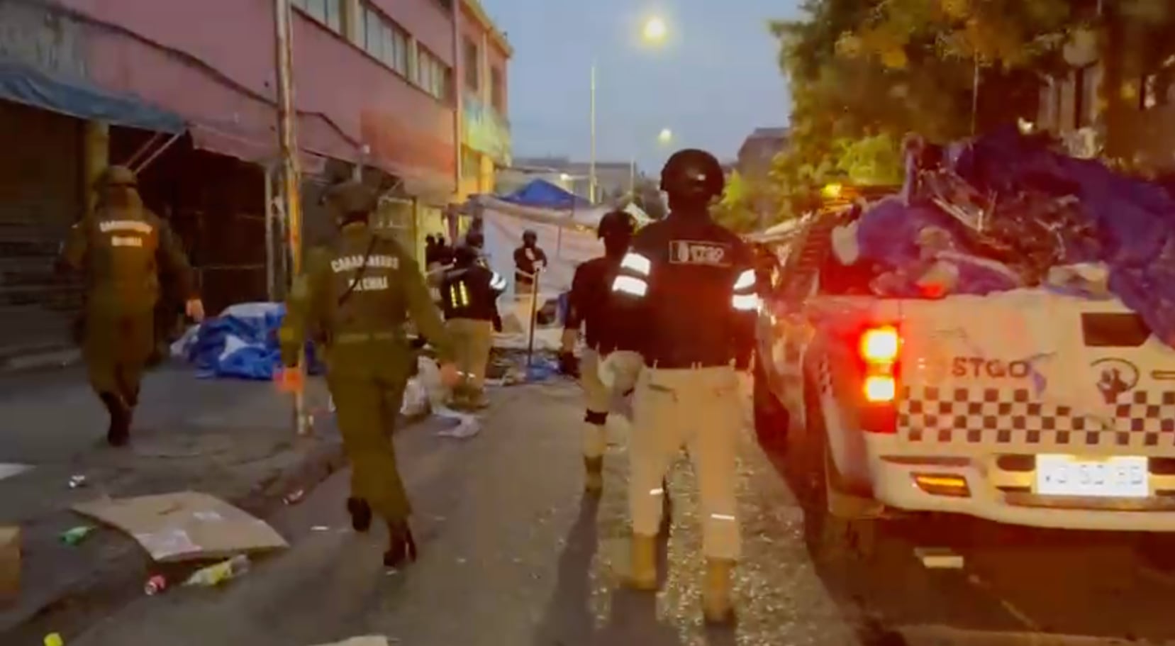 Así, más de 200 funcionarios de Carabineros y 100 agentes de seguridad de Santiago se desplegaron para sacar los toldos azules que ya estaban instalados durante la mañana, además de requisar la mercadería encontrada en el lugar, en un trabajo que se extenderá por al menos dos días, según lo estimado por las autoridades que presenciaron el desarrollo del operativo.