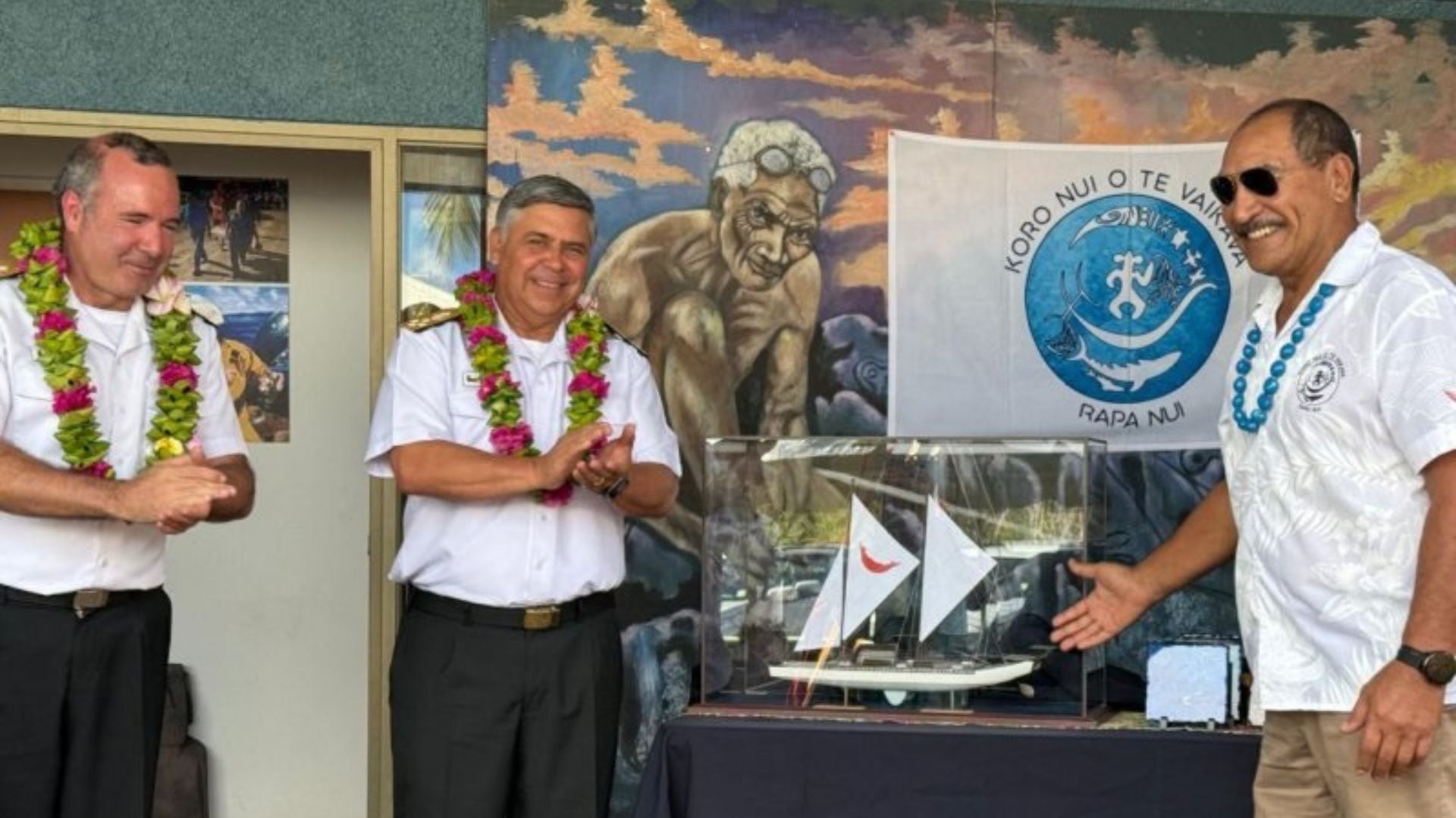“Llegamos a Rapa Nui para entregar la maqueta de una VAKA, embarcación tradicional polinésica que rememora la navegación ancestral. Con este gesto seguimos fortaleciendo los vínculos con la isla. Esta idea busca retomar la tradición de navegantes de los isleños, algo que nos une profundamente como marinos”, señaló el almirante Cabrera.