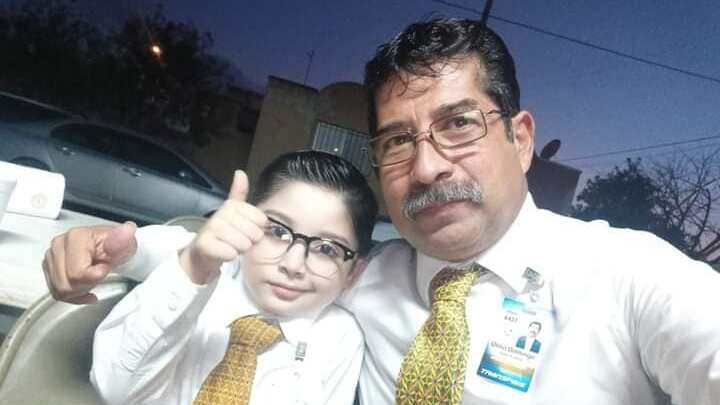 Con camisa blanca, corbata amarilla, lentes y hasta una credencial, el niño posó con su abuelo frente a la cámara, quien compartió la selfie en sus redes sociales.