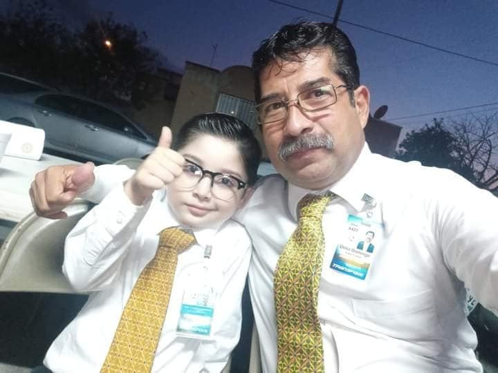 Con camisa blanca, corbata amarilla, lentes y hasta una credencial, el niño posó con su abuelo frente a la cámara, quien compartió la selfie en sus redes sociales.