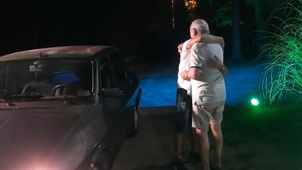 Tras esto, sonó la canción Color Esperanza y luego comenzaron a escucharse unos bocinazos. Finalmente, el joven apareció manejando un auto, tras lo cual se bajó y le entregó las llaves a su abuelo, quien agradeció el gesto.