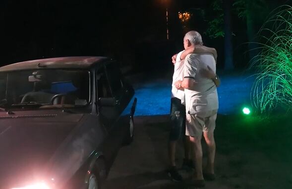 Tras esto, sonó la canción Color Esperanza y luego comenzaron a escucharse unos bocinazos. Finalmente, el joven apareció manejando un auto, tras lo cual se bajó y le entregó las llaves a su abuelo, quien agradeció el gesto.