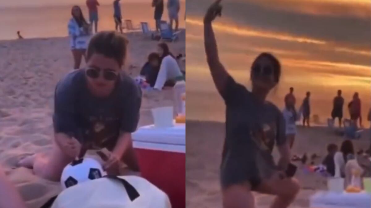 Una joven se volvió viral en redes sociales tras pincharle el balón con un cuchillo a un grupo que jugaba fútbol cerca de ella en la playa.