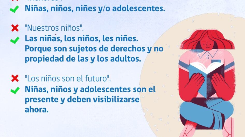 Es así que se indica que decirles “menores” es inadecuado, mientras que lo correcto es llamarlos “niñas, niños, niñes y/o adolescentes”.