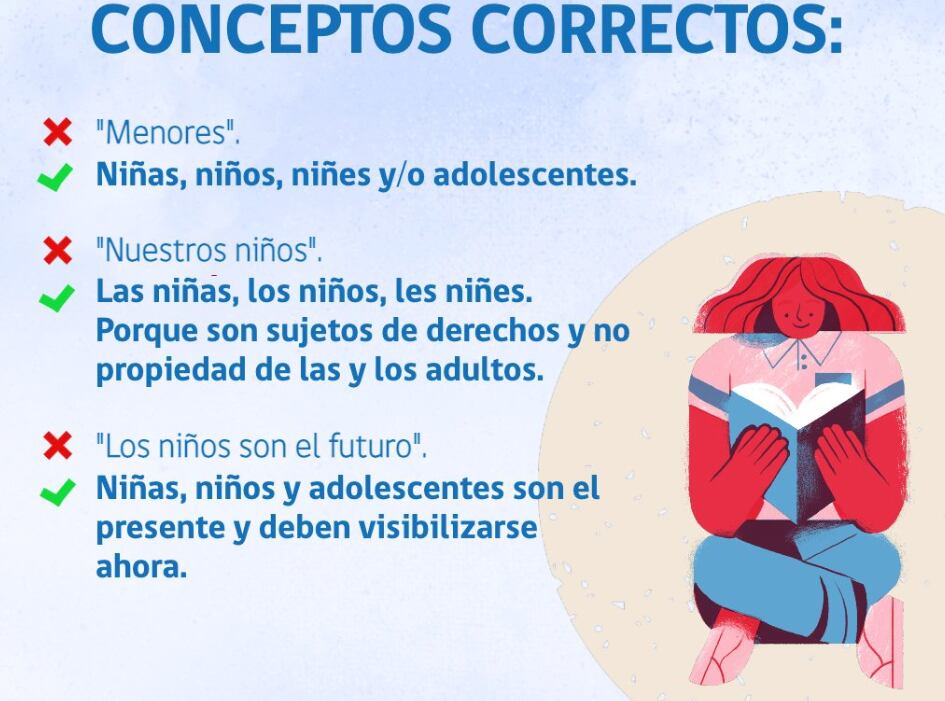 Es así que se indica que decirles “menores” es inadecuado, mientras que lo correcto es llamarlos “niñas, niños, niñes y/o adolescentes”.