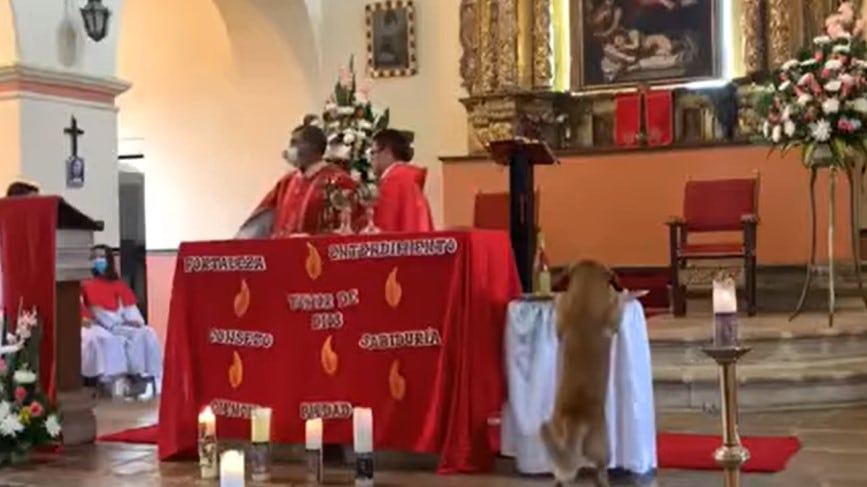Un perro se volvió viral a través de redes sociales luego que ingresara a una iglesia en Colombia.