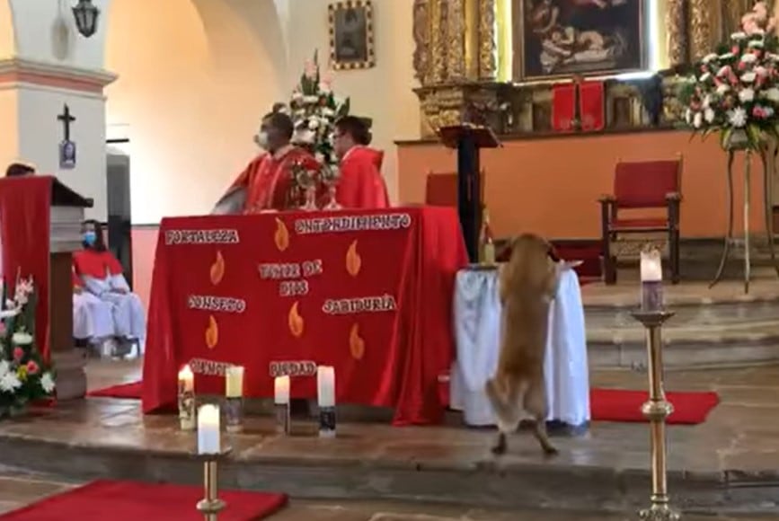 De acuerdo a lo que se observa en el registro, el can entró a la iglesia y se acercó hasta el altar donde se encontraba el cura.
