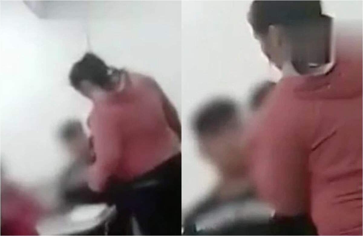 Una mujer ingresó a una sala de clases de un colegio y agredió a un estudiante que habría amenazado a su hijo. El hecho quedó captado a través de un video.