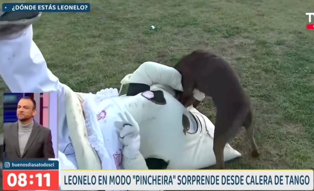 “Ayúdenme”, gritaba la empanadita. Esto fue lo que ocurrió en el matinal de TVN, “Buenos Días a Todos”, que hacía un contacto en directo desde Calera de Tango, cubriendo las fondas y ramadas de las Fiestas Patrias. Cuando el corpóreo de empanada sufrió un ataque de amor de un perrito.