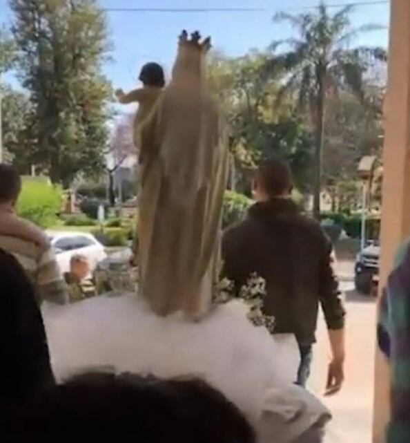 Iban a empezar la procesión del día de la Virgen de la Merced en la ciudad de San Justo, Santa Fe, Argentina, cuando ocurrió lo que todo fiel religioso teme en este tipo de celebraciones: Se les cayó la escultura de la virgencita y quedó totalmente destruida.