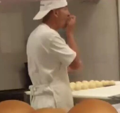 En el video grabado se puede ver al panadero amasando el producto, cuando de un momento a otro, comienza a lamer la masa que iba a hornear, y más tarde, poner a la venta.