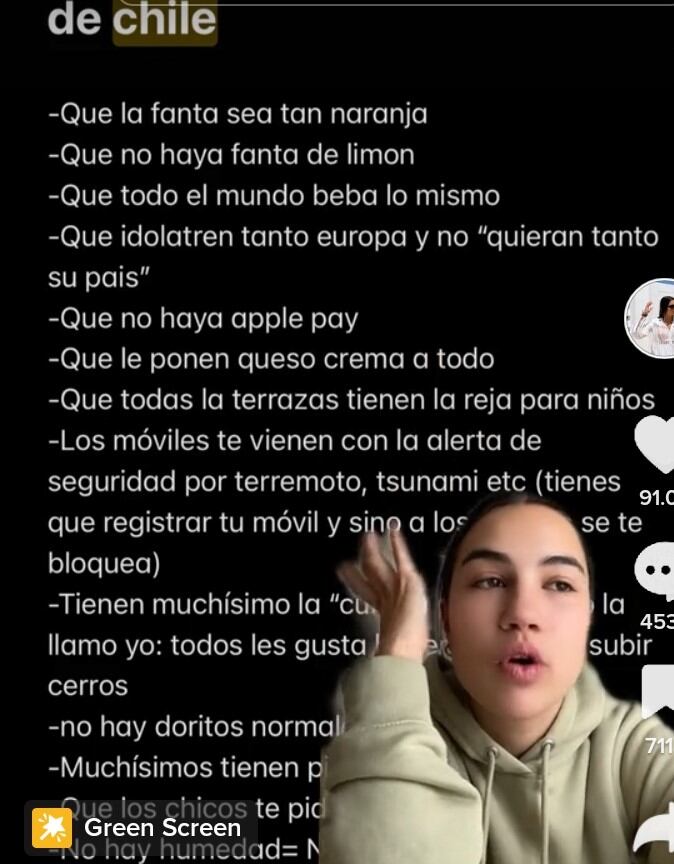 En uno de los videos la joven aclaró que “esto es desde mi punto de vista, no todo Chile es así. Y todo es en plan bien, no en plan mal”.