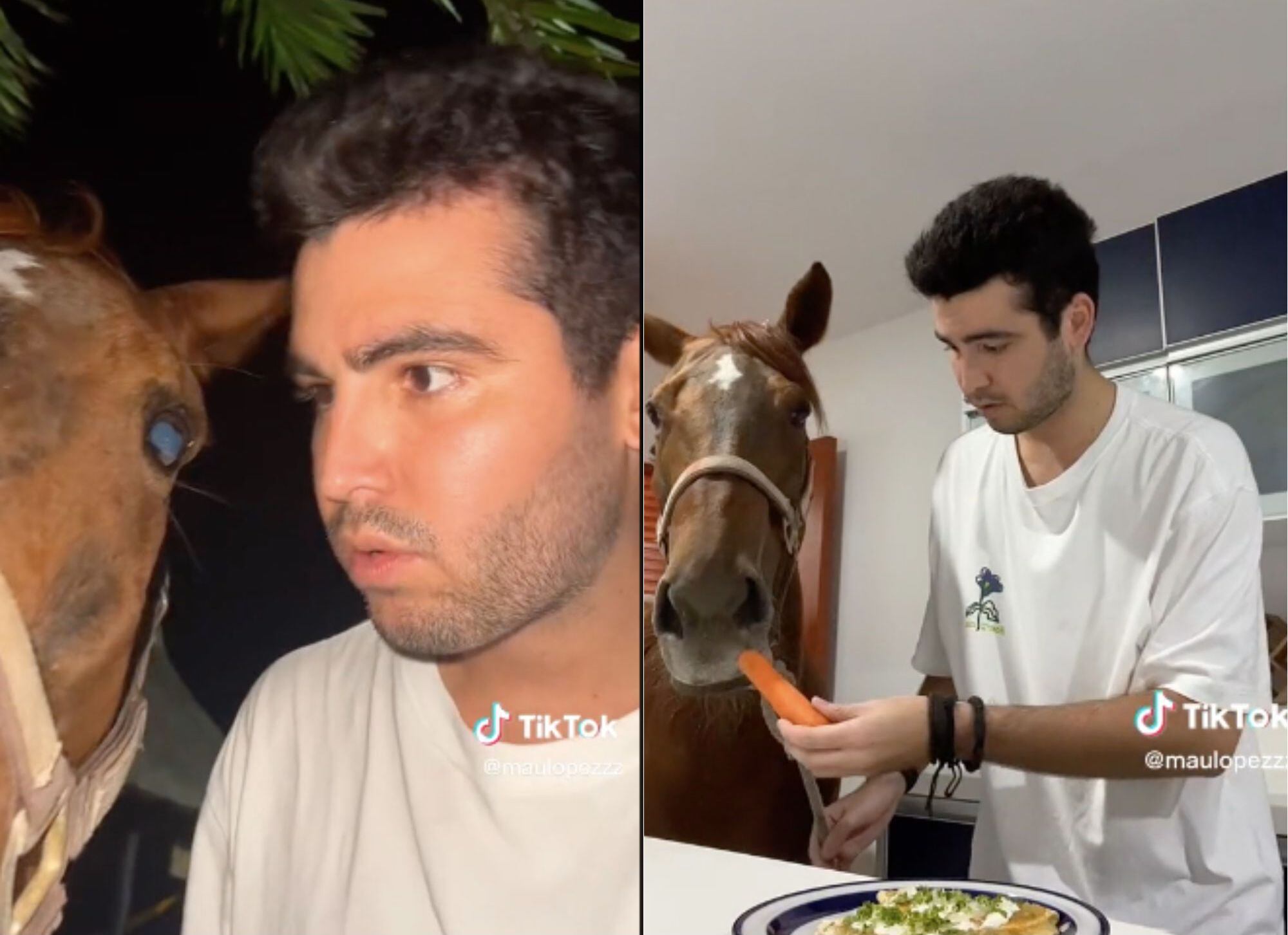 Finalmente Mau López y su caballo “Tiro al Blanco” grabaron una de las tendencias de TikTok mientras se encontraban en la cocina, el cual también fue viralizado en la red social.