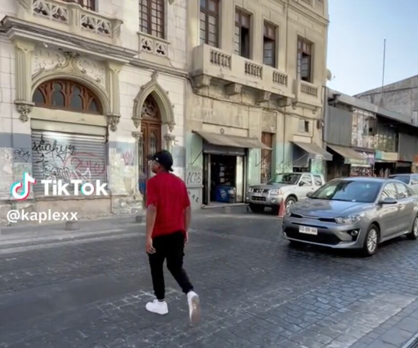 Un tiktokero boliviano mostró cómo se cruza un paso de cebra en la ciudad de Iquique. En el video muestra que el conductor se detiene, para que él pueda pasar.