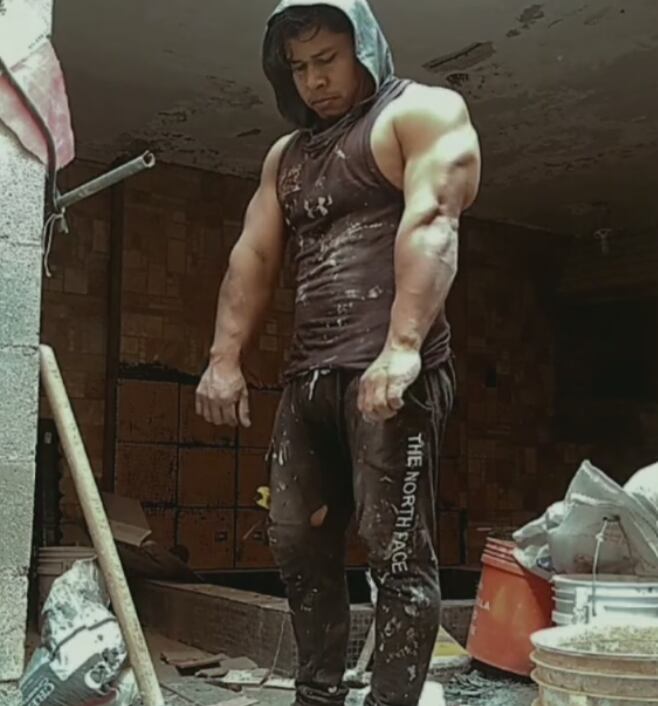 En lugar de pesas, bolsas de cemento; y la carretilla pesada con arena su herramienta para mover los biceps. Freddy Bautista es un joven albañil que trabaja en la construcción de de casas residenciales en San Luis Potosí, Méxic, pero en redes sociales ya lo bautizaron como “El Albañil legendario”.