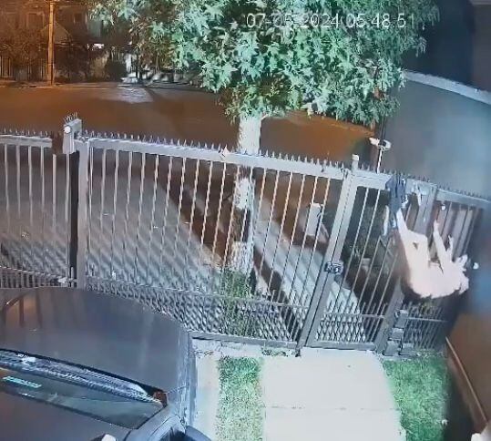 Un insólito hecho se registró en la comuna de Maipú, cuando una mujer, que intentaba perpetrar un robo en una casa ubicada en el sector Cerro Murallón, quedó atrapada en las púas de la reja. Por si fuera poco, en un intento por desenredarse, quedó semi desnuda colgando de la reja, hecho que quedó registrado en la cámara de seguridad de la vivienda.