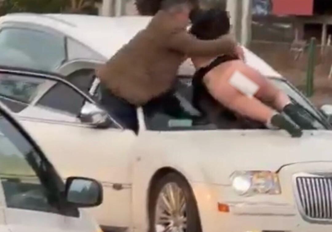 A través de un video que comenzó a circular en la red X se ve a una joven semi desnuda subirse al capot de una carroza fúnebre, gritando improperios contra el muerto.