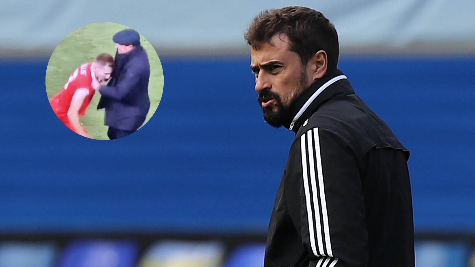Esta acción hizo estallar al técnico español, quien respondió de la misma manera, ya que justo cuando Krollis se dirigía a abandonar el campo, Pep Clotet lo encaró y lo agredió físicamente al agarrar su jersey del pecho y jalonearlo de forma brutal, mientras le reclamaba airadamente.