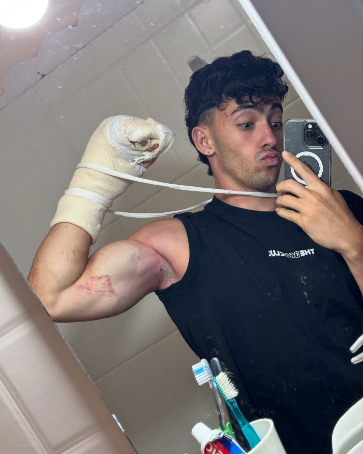“Créanme que fue algo que me dejó muy marcado literalmente pensé que no la contaba”, señaló en uno de los mensajes que subió junto a una fotografía donde aparece a torso desnudo y mostrando el brazo izquierdo completamente vendado.