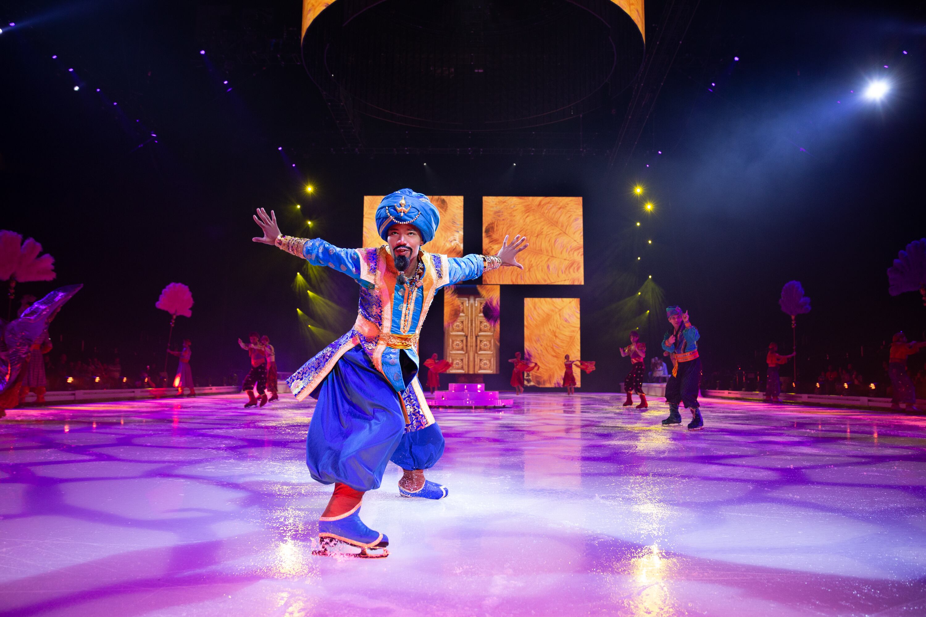 Aunque todo sucede sobre una pista de hielo, el escenario de Disney On Ice es una estructura monumental que transforma cualquier espacio en un reino de fantasía.