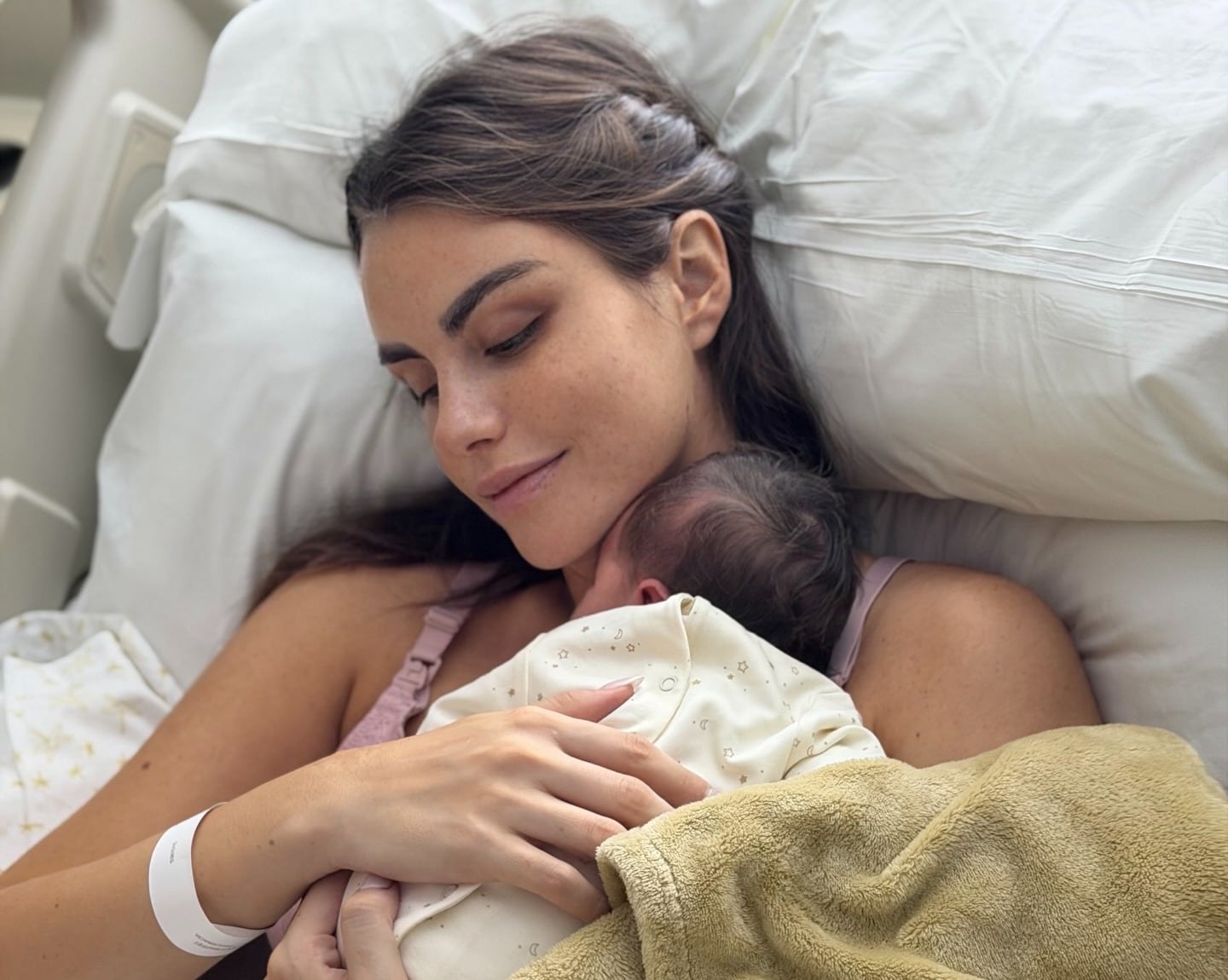 La publicación en Instagram fue acompañada de varias imágenes de la exMiss Chile junto a la bebé recién nacida y también de Sammis Reyes, durante los primeros días con ella.