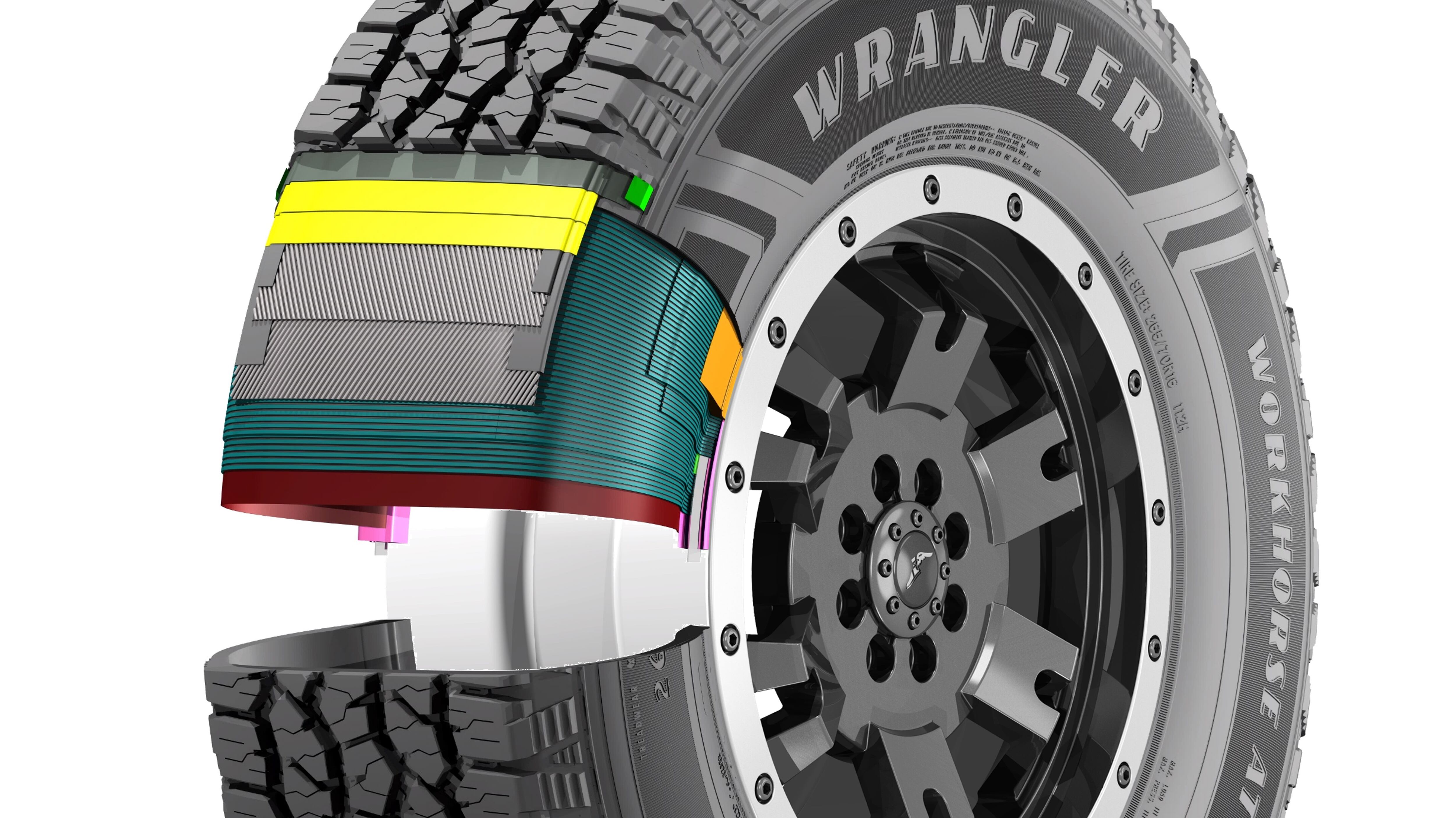 En pruebas realizadas en el laboratorio y en el campo de pruebas de Goodyear, el Wrangler Workhorse AT obtuvo un resultado 20% mayor en kilometraje y 4,6% de mejora en consumo de combustible en comparación con su antecesor, el Wrangler Armortrac. En cuanto a rendimiento y maniobrabilidad, el Wrangler Workhorse AT obtuvo un 22% de mejora para prevenir aquaplaning en curvas y un 4% superior en frenado en superficie mojada en comparación con su antecesor.
