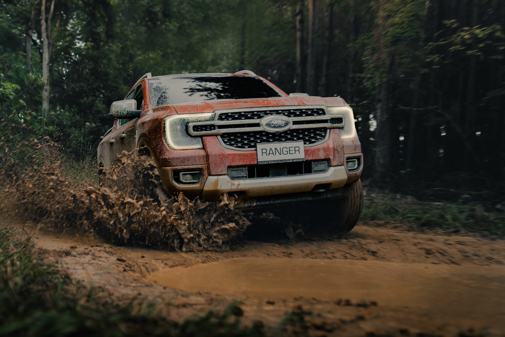 Ranger 2024 está construida sobre una nueva plataforma, con un chasis más grande y robusto. El musculoso perfil de la carrocería, con un imponente frontal y faros LED en forma de C, sigue el icónico estilo de la familia de pickups de Ford.