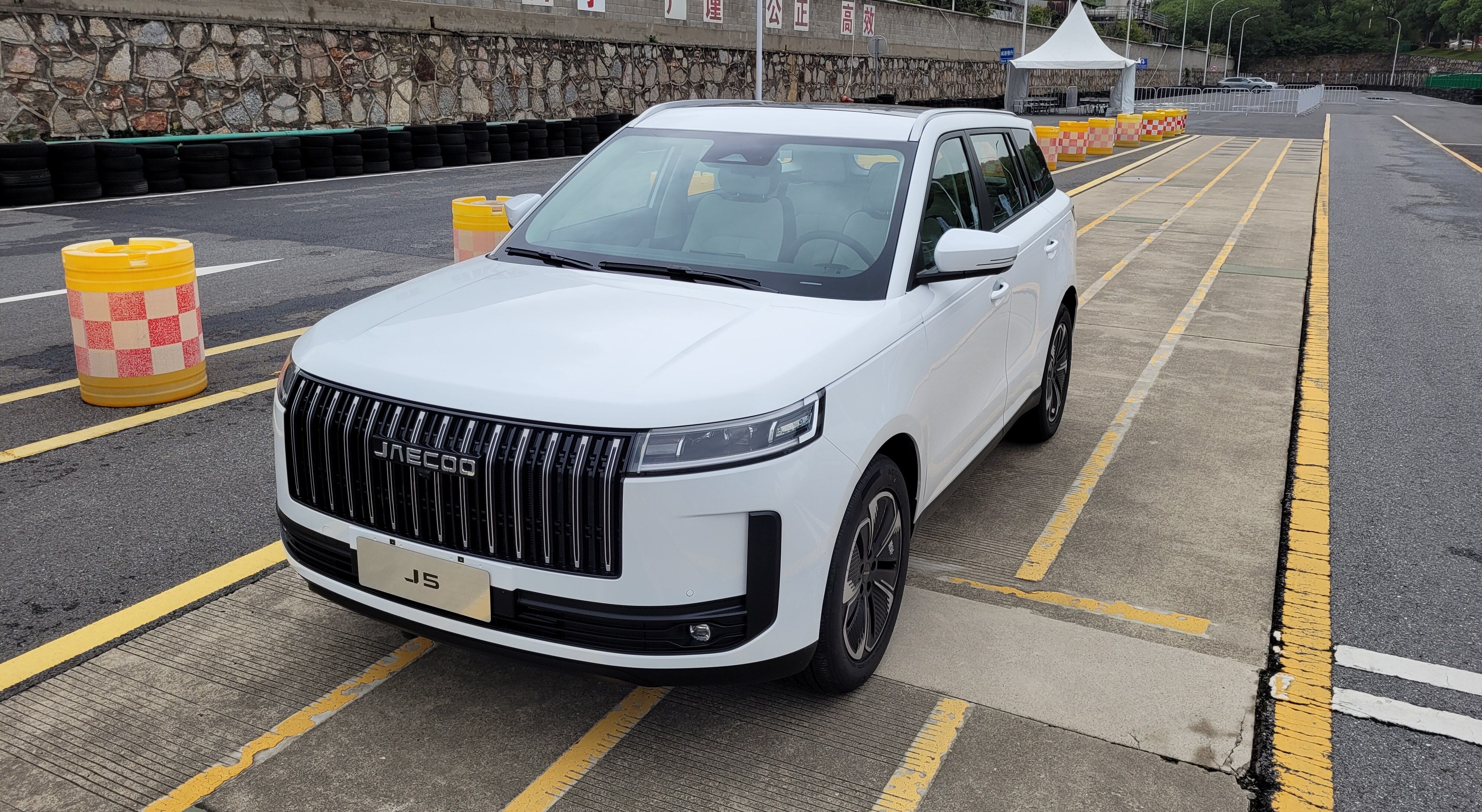 El diseño exterior del Jaecoo J5 está inspirado en paisajes montañosos, con líneas robustas y una parrilla frontal rectangular con líneas cromadas verticales inspiradas en las cataratas, que le otorga una apariencia imponente. El modelo presenta luces delanteras rectangulares, un techo ligeramente inclinado y ruedas de 5 radios que refuerzan su perfil deportivo. En la parte trasera, el emblema AWD confirma la tracción total del vehículo, lo que debería mejorar su rendimiento terrenos no pavimentados, pero sin que se convierta en un todoterreno.