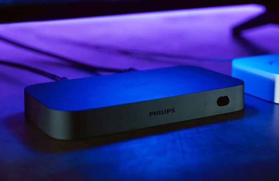 ¿Qué necesitas? Aquí hay algo clave: como todo ecosistema, necesitas los otros elementos de HUE. Esto considera por supuesto las luces: que puedes encontrar ampolletas, tiras de luz y lámparas de HUE. Pero lo más importante es el Phillips Hue Bridge. Es literalmente el cerebro de todo porque es una cajita que, conectada a tu router, permite el control y la sincronización de todos los dispositivos, tanto las luces como la Sync Box.